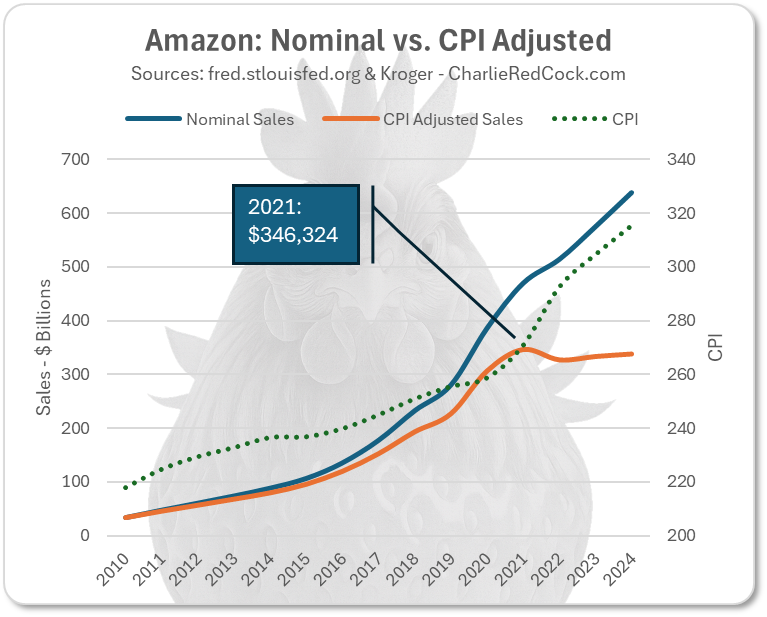 But CPI adjusted sales reveal the truth: the purchasing power of those billions has been eroding.